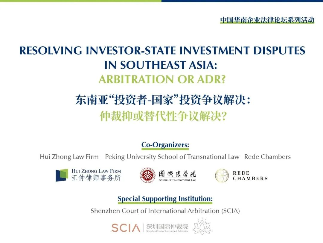 2024年10月27日,由汇仲律师事务所、北京大学国际法学院、履德大律师事务所(Rede Chambers)联合主办,深圳国际仲裁院(SCIA)特别支持的中国华南企业法律论坛系列活动之“SCIA法务研讨:东南亚‘投资者-国家’投资争议解决研讨会”在前海国际仲裁大厦(SCIA Tower)举办。