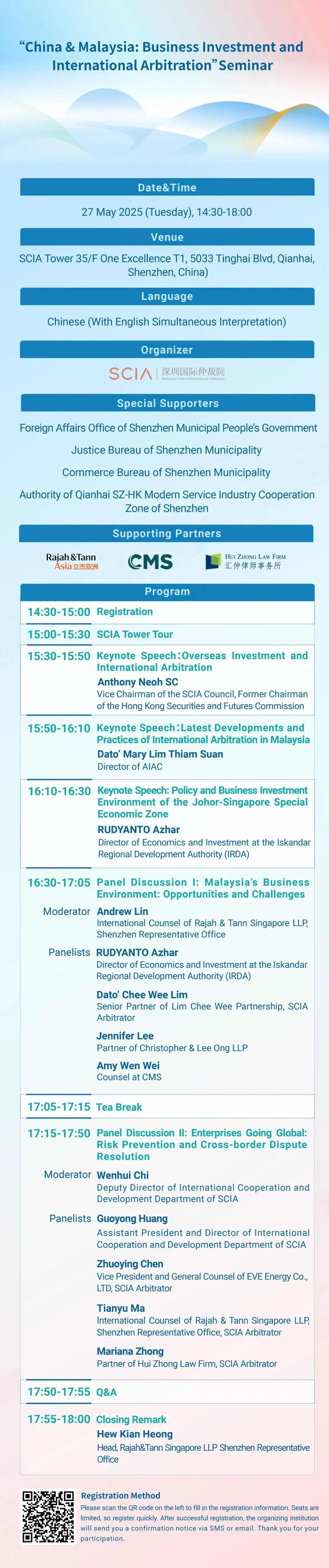 This is an exceptional opportunity to learn and connect with the arbitration and commercial communities from China and Malaysia. Please see the agenda below, we sincerely invite you to participate!