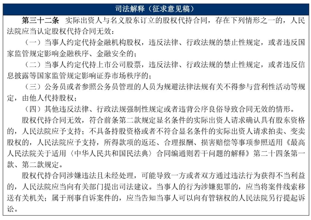 第三十二条【股权代持无效及其后果】
