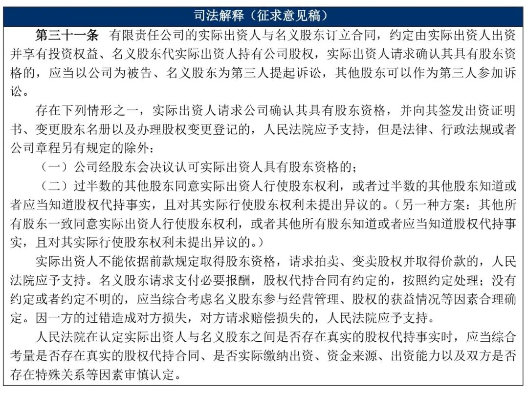 第三十一条【实际出资人的显名】