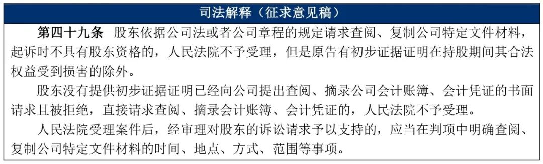 理由:《公司法》第57条第2款仅规定股东可以要求查阅公司会计账簿、会计凭证,征求意见稿则规定股东有权查阅、摘录会计账簿、会计凭证,但对于“摘录”的认定标准、概念边界未予明确,如摘录与复制的区别是什么、全文摘录属于摘录还是复制、摘录的具体方式包括哪些(如手机拍照)等。故我们建议对于“摘录”的含义予以明确,若就部分细节问题无法在司法解释中直接规定,亦可考虑通过入库案例、配套理解与适用书等方式作出认定,以提供清晰的实操指引。