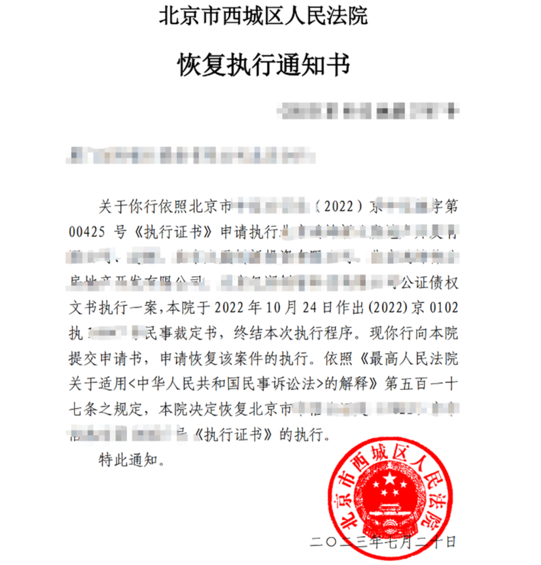 最高人民法院在其《民事诉讼文书样式》中,则明确终结本次执行程序后恢复执行,应当使用《通知书》,通知书应载明如下内容: